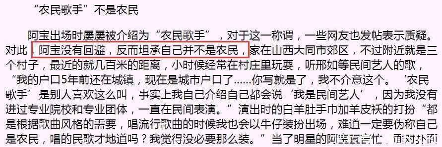 本以阿宝能凭着“农民歌手”的身份一直火下去,但他却因为这四个字身败名裂。